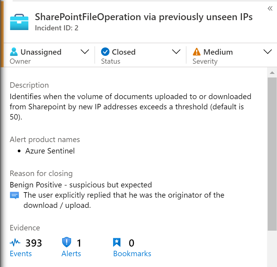 Voilà pour un cas concret Azure Sentinel appliqué à Microsoft 365. Personnellement je suis assez bluffé par ce SIEM+SOAR. Facilité « d’installation », nombre de connecteurs, puissance des règles d’analyses… UEBA me parait être extrêmement prometteur. La partie SOAR qui s’appuie sur Logic App agrandi le champs des possibles jusqu’à l’infinie pour une réponse à incident automatisé.