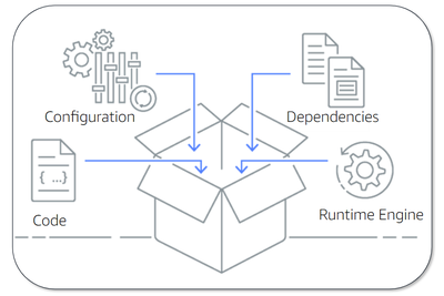 Le container est le chemin le plus proche vers l’application. Il permet l’isolation de chaque composant de celle-ci (microservices). Il permet donc d’exécuter, par exemple, différentes versions du même produit (dépendances différentes) au sein du même host physique. La solution phare est Docker qui s’intègre parfaitement à la plupart des pipelines de développement.