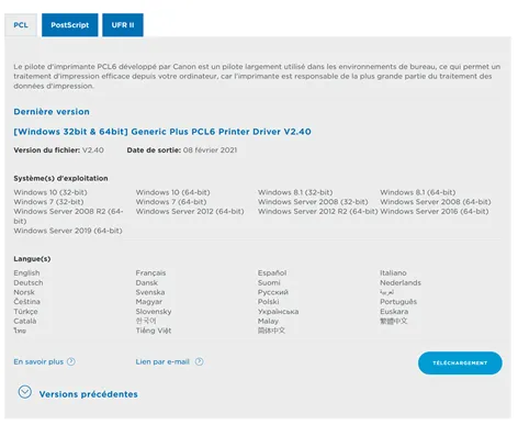 PowerShell va nous aider à installer cette imprimante, mais avant tout il faut récupérer les pilotes que nous souhaitons installer sur nos machines.