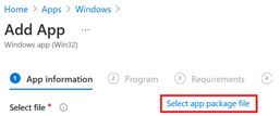 Renseigner les informations de votre application qui apparaitront dans le portail d’entreprise et Intune.