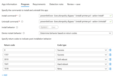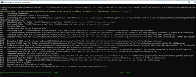 IntuneWinAppUtil.exe -c C:\TEMPO\intune-pckg\Printer-IRC3520\sources -s C:\TEMPO\intune-pckg\Printer-IRC3520\sources\Install-printer.ps1 -o C:\TEMPO\intune-pckg\Printer-IRC3520