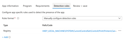 Dans notre exemple la méthode de détection s’appuie sur la présence d’une clé de registre liée à notre Imprimante