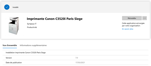 Les Machine jointes à Azure et enrollées dans Intune ont automatiquement cette application installée.