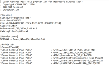 C’est dans le Fichier *.INF que vous trouverez le nom du Pilote qu’il faudra renseigner dans votre script :