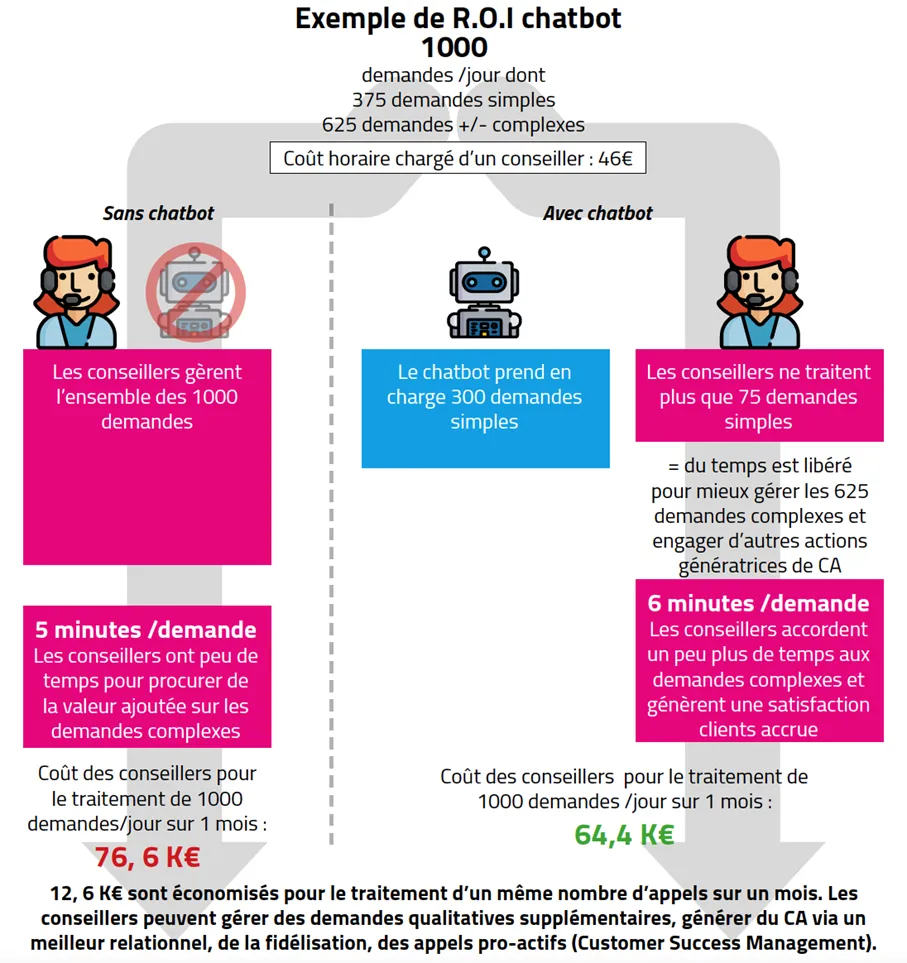 Les chatbots répondent aussi à ces questions en agissant sur le taux de réponse aux clients et donc, en réduisant les coûts du service client.
